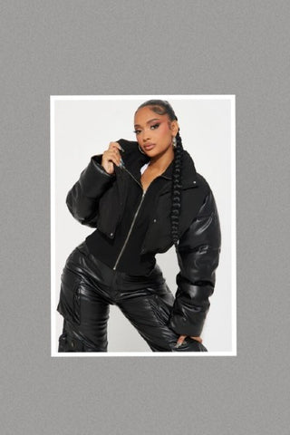 Gotta Have Her PU Leather Puff Sleeves Crop Jacket (Black)