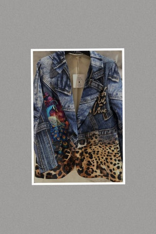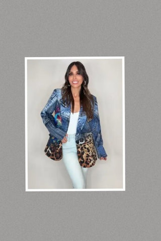 Baby Doll Ruffle Detail and Denim Patch Bomber Jacket (Mocha)