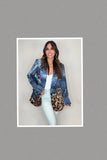 Denim Oversized Patchwork Blazer with Pockets (Black)