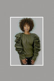 Statement puff sleeves with gathered details Fitted silhouette with defined waistline Eye-catching mix of oversized decorative buttons Classic collar with structured neckline Slightly cropped length with tailored back finish